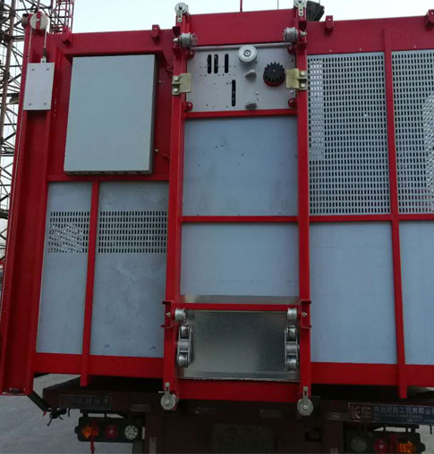 (5)卸料时必须待吊笼停稳后 ,作业人员才能开防护门上吊笼卸料。 卸料后作业人员将防护门关好后,卷扬机手才能下放吊笼。
